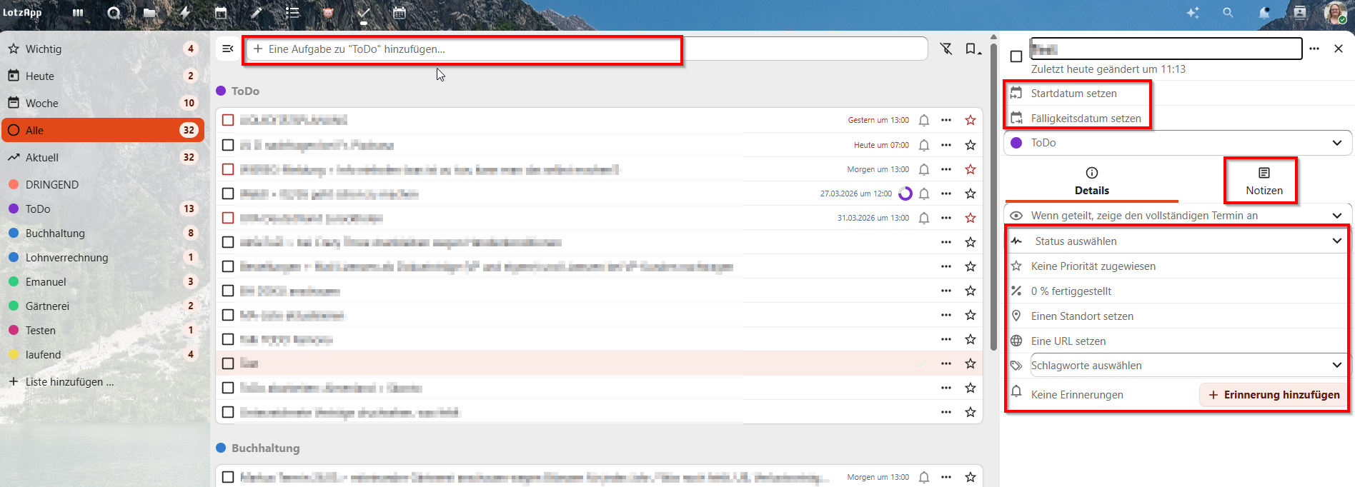 Jede Aufgabe kann im Nachhinein durch anklicken geändert oder ergänzt werden