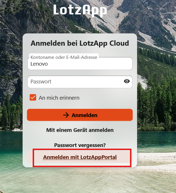 3. Klick auf "Anmelden mit LotzApp Portal"