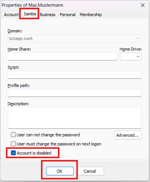 1. LDAP - Doppelklick auf User - Samba - Haken setzen - Ok