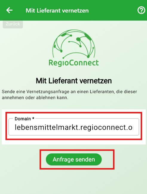 Um sich mit anderen Betrieben zu vernetzen, ist im ersten Schritt eine Vernetzungsanfrage erforderlich.