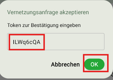 Wenn du eine Anfrage bestätigen möchtest, muss du zuvor noch den Token, den du per E-Mail zugesendet bekommst eingeben und auf "OK" klicken