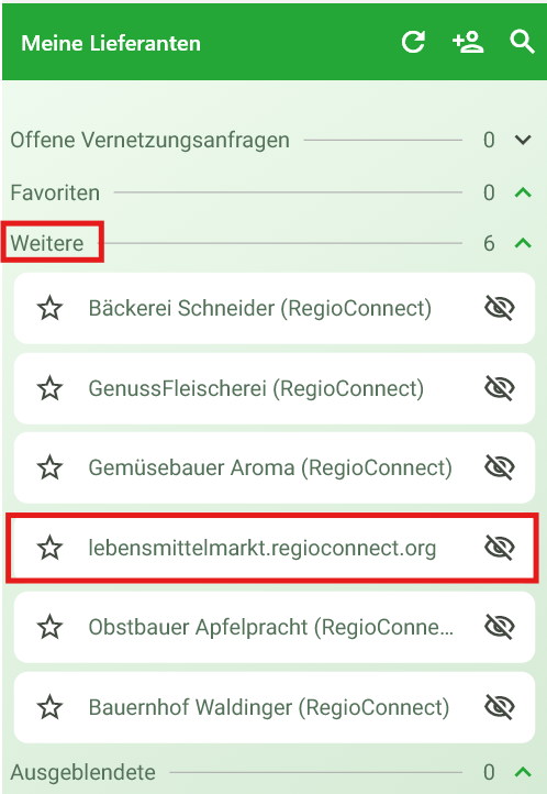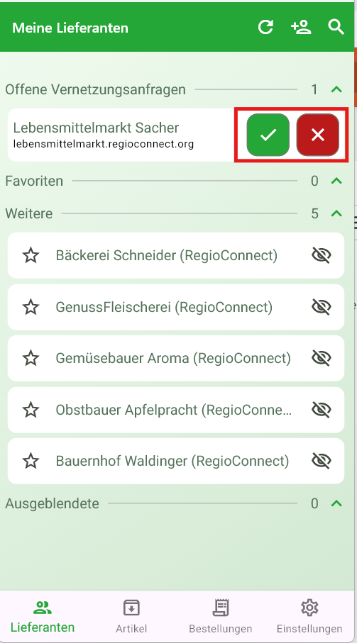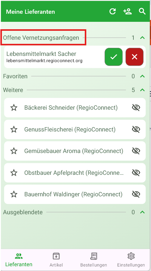 Unter dem Reiter "offene Vernetzungsanfragen" siehst du alle Anfragen von Betrieben, die sich gerne mit der vernetzen würden: