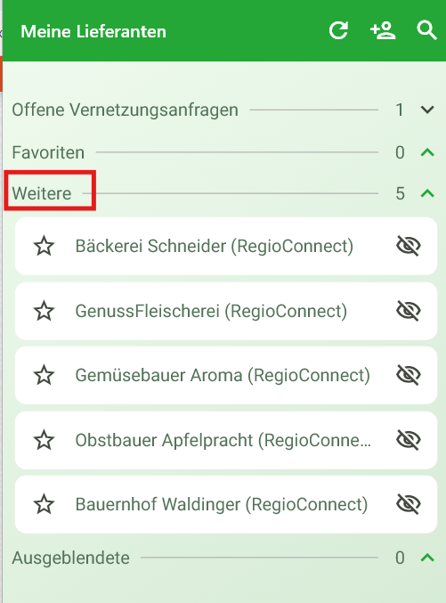 Unter dem Reiter "offene Vernetzungsanfragen" siehst du alle Anfragen von Betrieben, die sich gerne mit der vernetzen würden:
