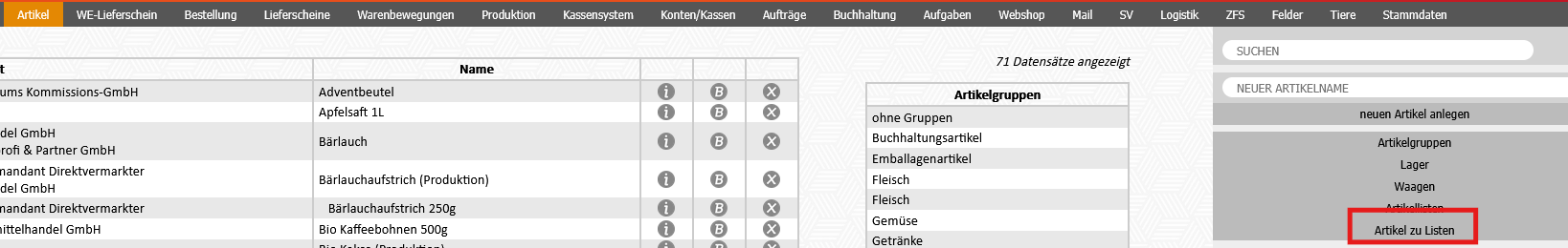 - Artikel anwählen, die der Liste zugeordnet werden soll