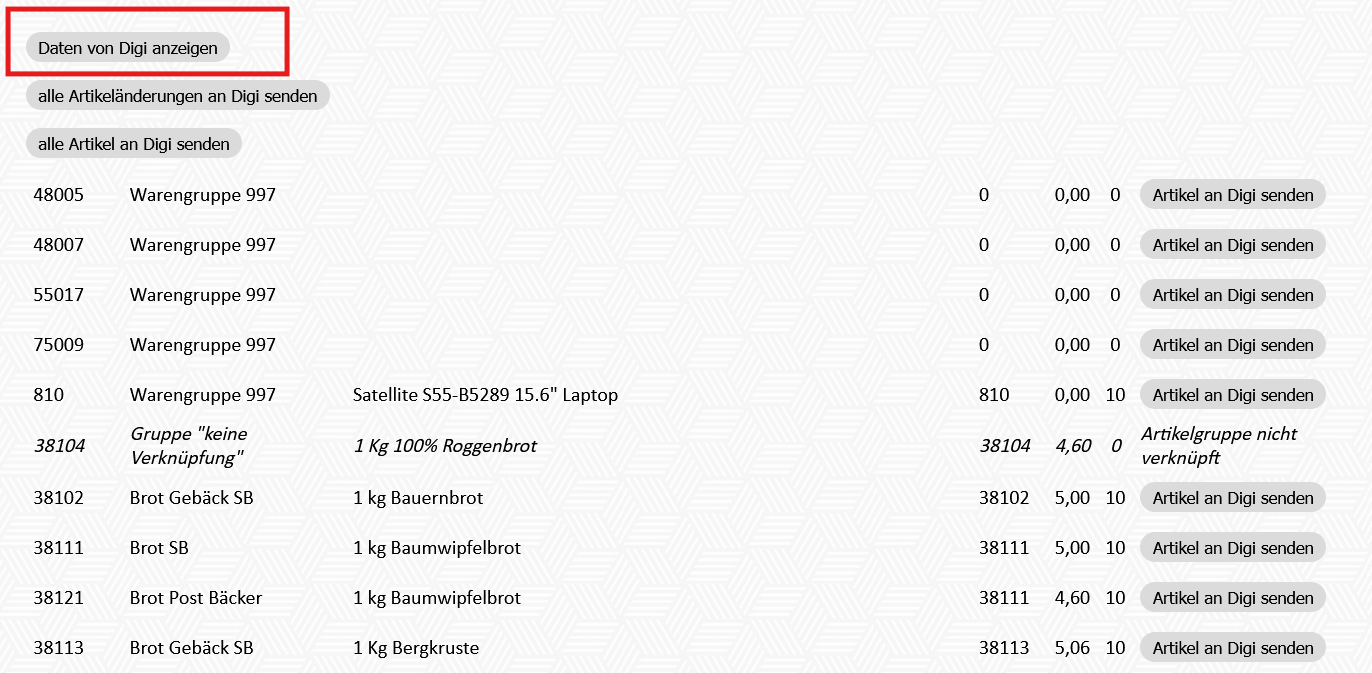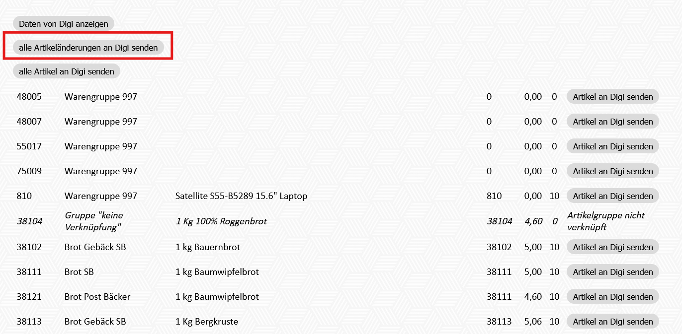 1) Alle Artikeländerungen an Digi senden: