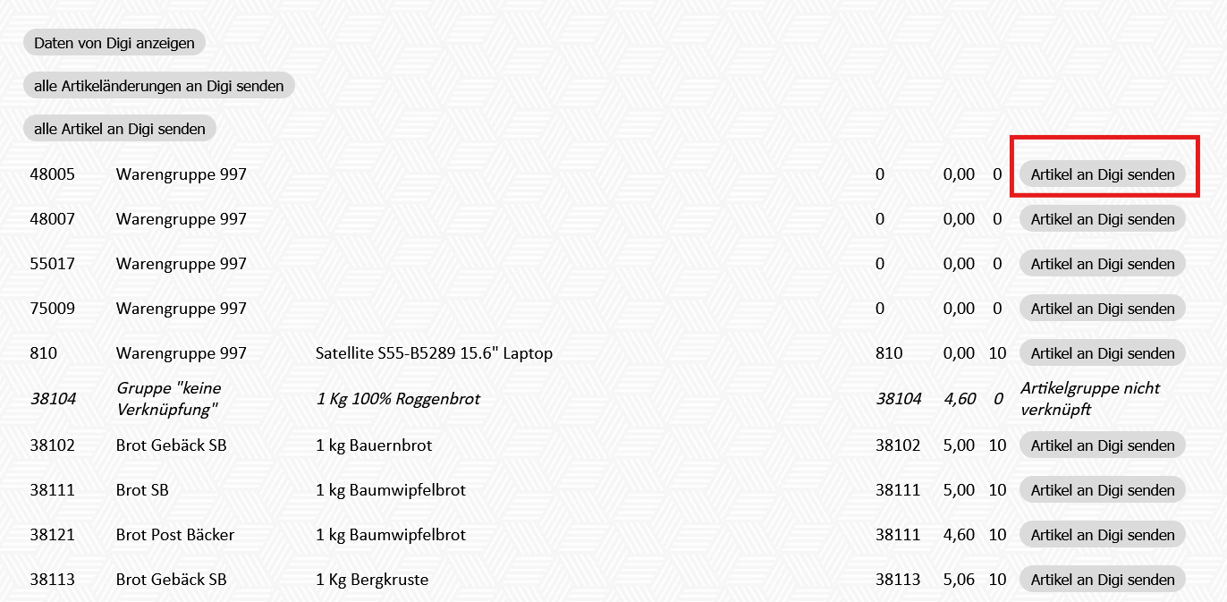 4) einzelne Artikel an Digi senden: