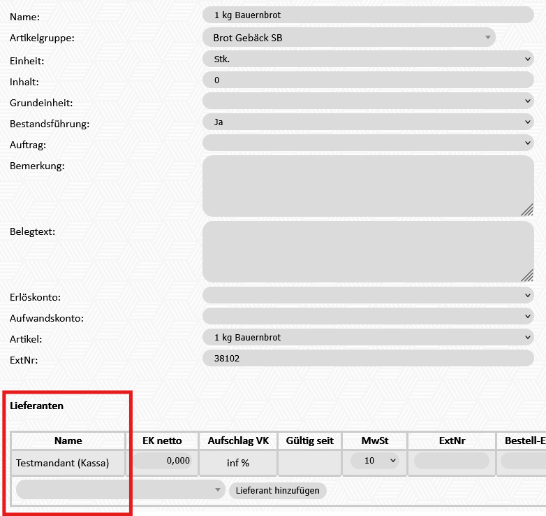 2. Artikel, bei denen der eigene Mandant als Lieferant hinterlegt ist werden summiert