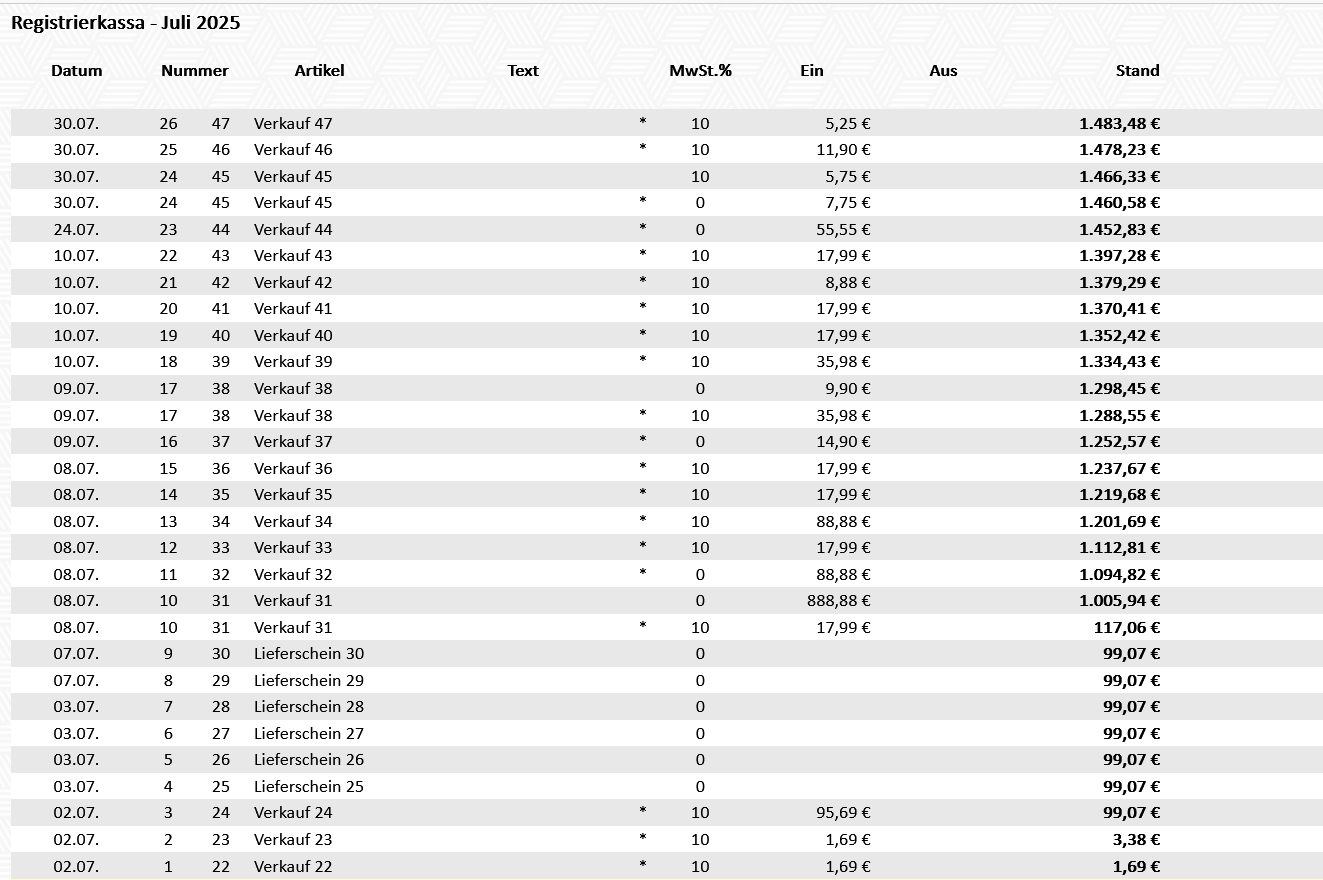 - Summenzeilen werden nach Text und Mehrwertstreuer summiert