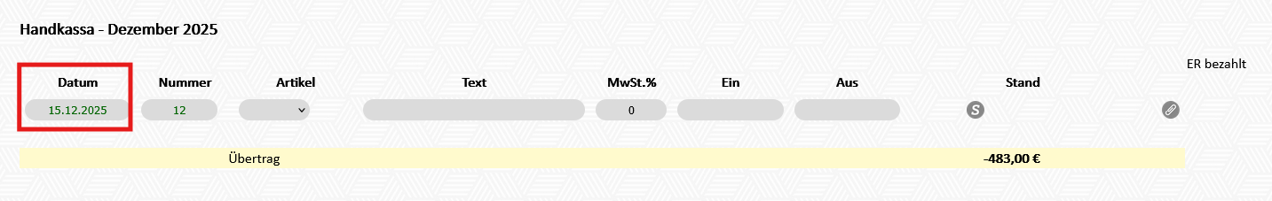 4. neue Zeile in der Kassa wird erfasst: