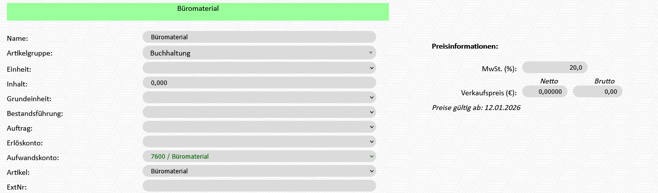 - Es wird nur mit den Buchhaltungsartikel gearbeitet, also mit den Artikeln, die für die Erfassung der Eingangsrechnungen verwendet werden