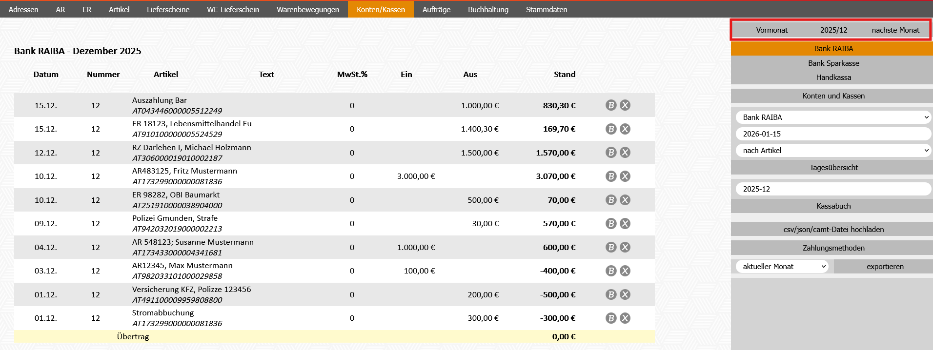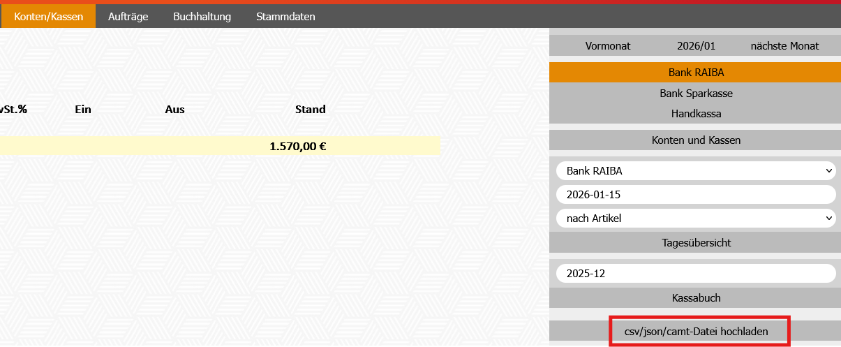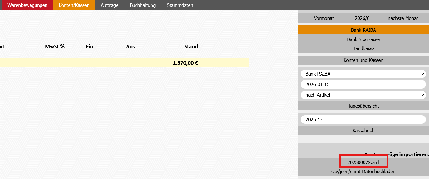 - Modul Konten/Kassen - Bankkonto rechts im Schirm auswählen