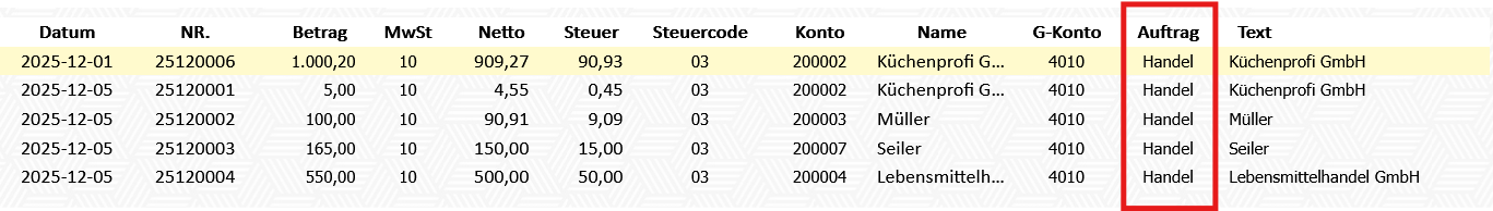 3. Sobald die Ausgangsrechnungen in die Buchhaltung übernommen wurden, wird die Kostenstelle automatisch zugewiesen