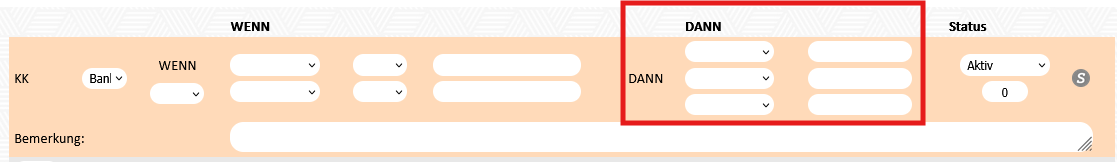 In den Spalten "Dann" wird festgelegt, was mit dieser Buchung passieren soll: