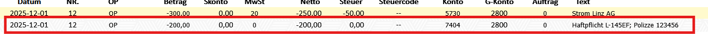 - auf welches Konto sie verbucht wird (z.B. Strom, Miete, Versicherung etc.)
