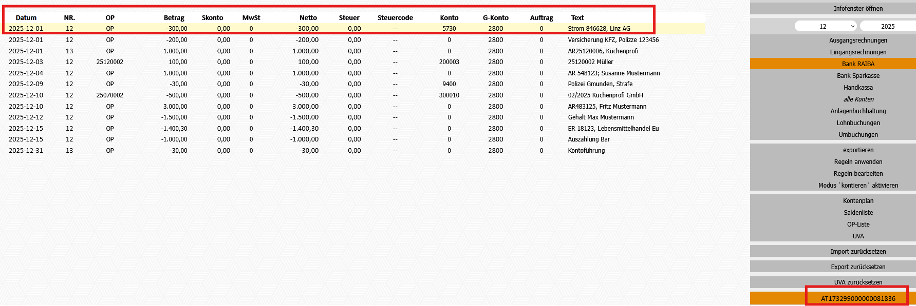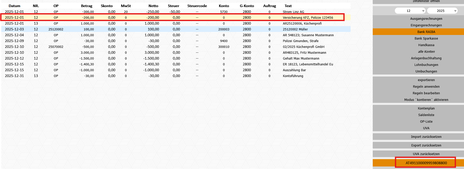 Wenn die Regel korrekt angelegt wurde, wird diese Buchungszeile nun automatisch verbucht: