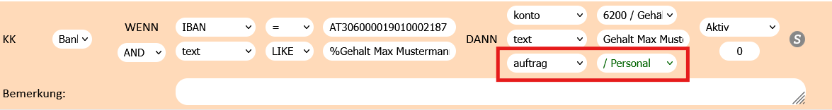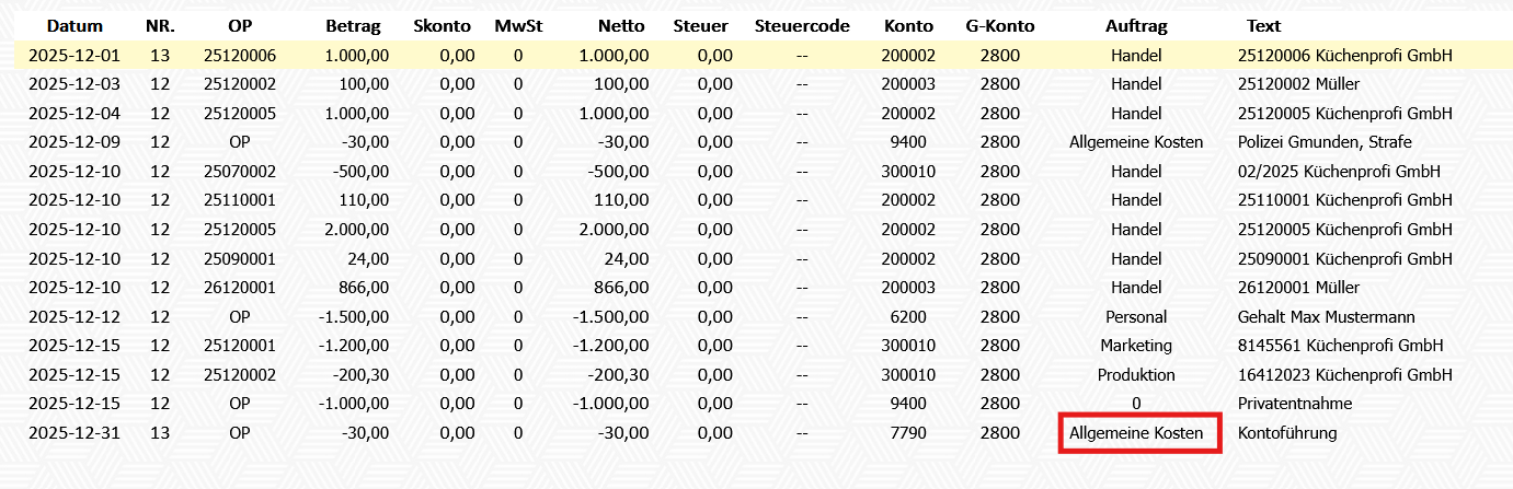 Bei allen anderen Bankbuchungen, können die Kostenstellen bei Bedarf