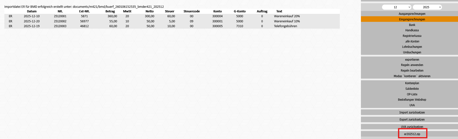 6. Eingangsrechnungen an die Steuerberatung übergeben/exportieren