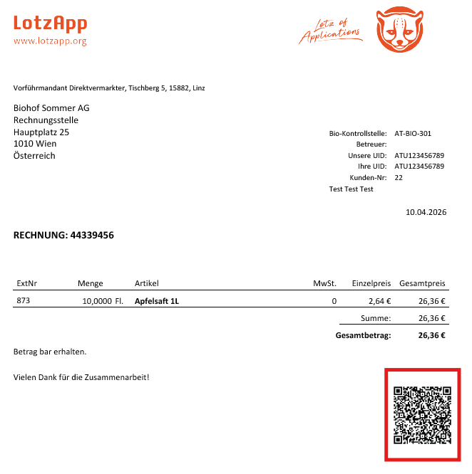 5. Nach der Signierung wird der QR-Code auf dem Beleg erzeugt
