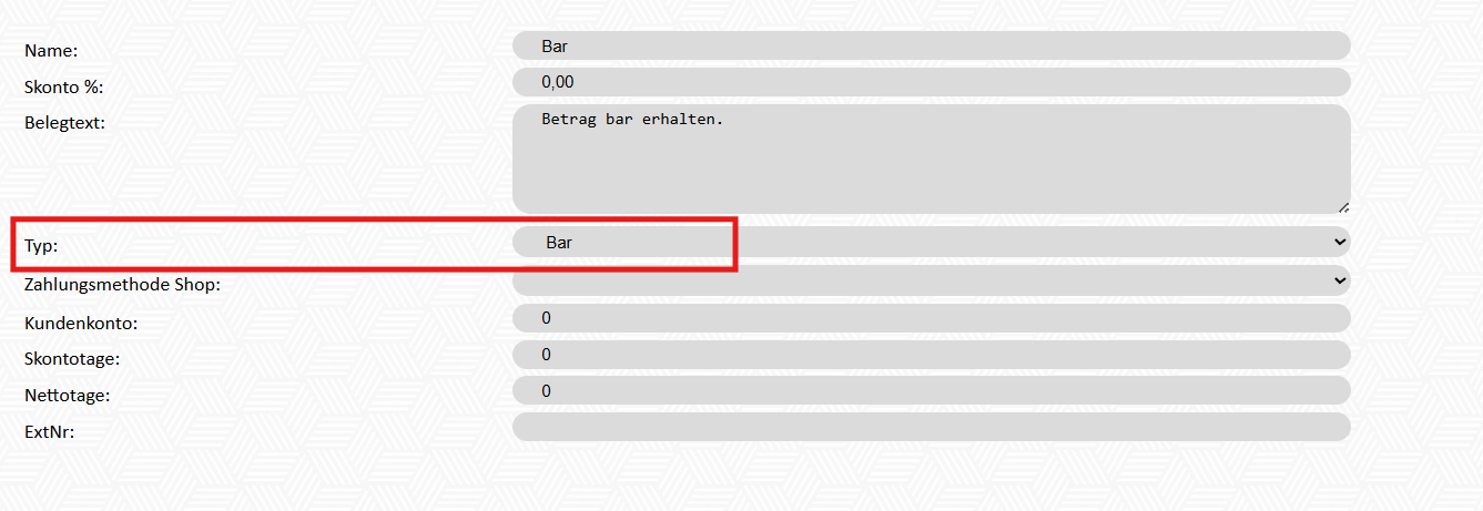 1. Überprüfen, ob bereits eine Zahlungsmethode "Bar" im Mandanten angelegt ist. Falls noch keine Zahlungsmethode angelegt ist, kann diese wie folgt erstellt werden -> Zahlungsmethoden anlegen | LotzApp Wiki