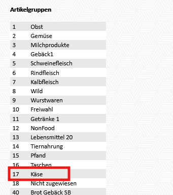 - Um nach dem Anlegen der Artikelgruppen im Fresh alle Artikelgruppennummern zu sehen geht man wie folgt vor: