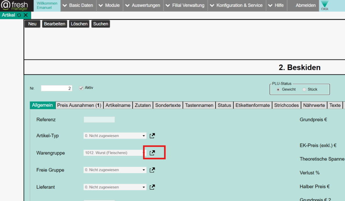 Artikelgruppen mit Digi/Fresh verknüpfen