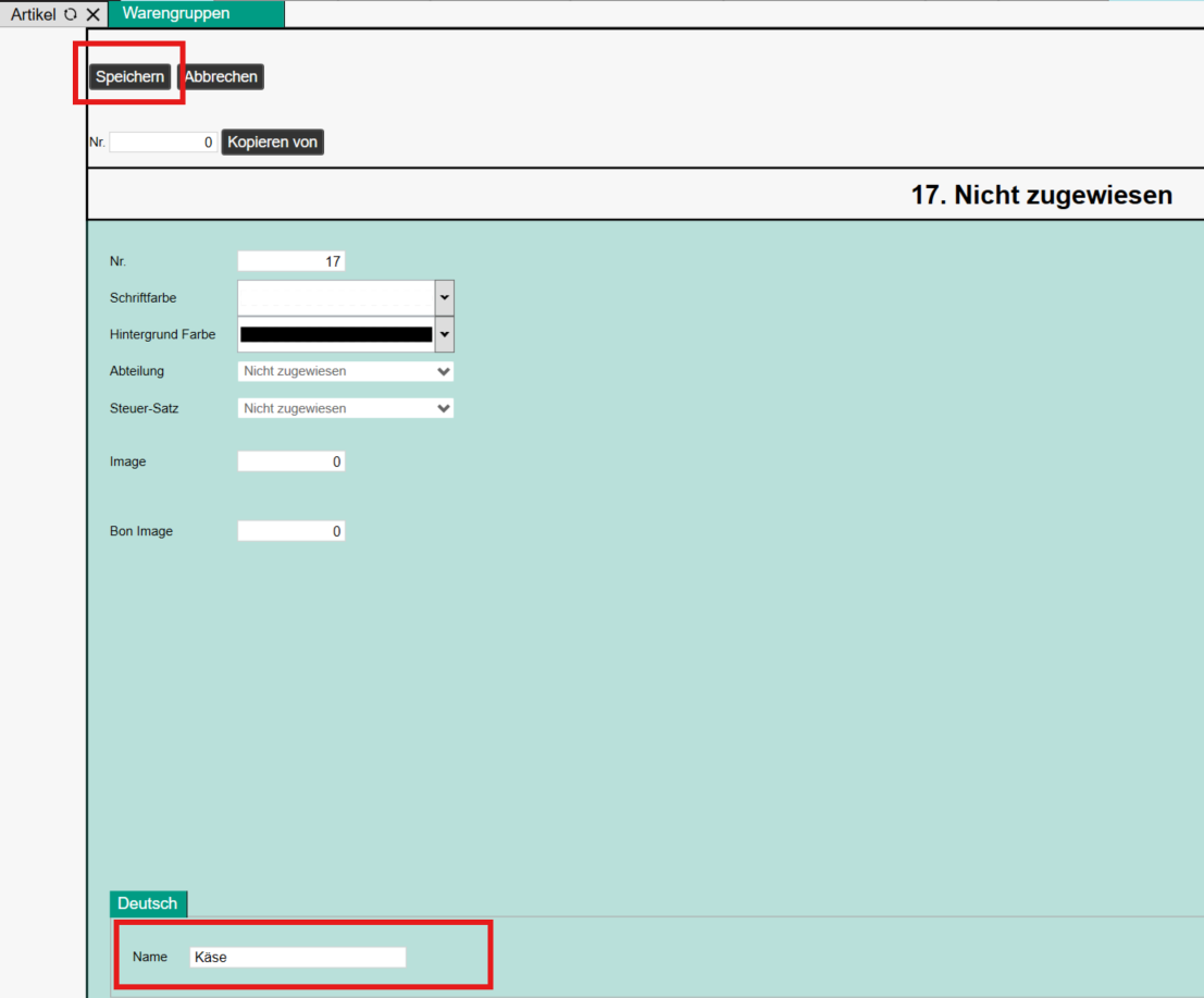 - Diese Nummer muss nun bei der selben Artikelgruppe in LotzApp eingetragen werden: