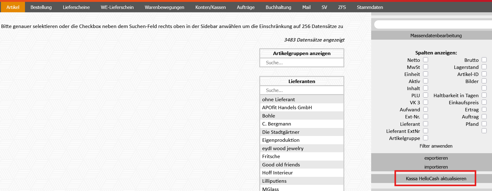 1. Modul Artikel - Kassa HelloCash aktualisieren: