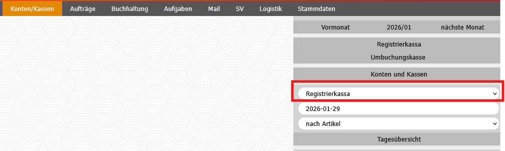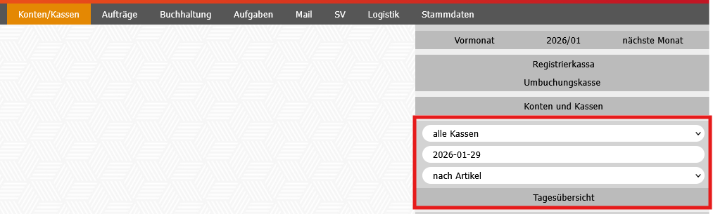 Modul Konten/Kassen - Tagesübersicht