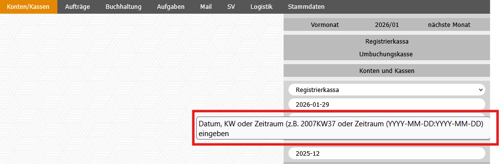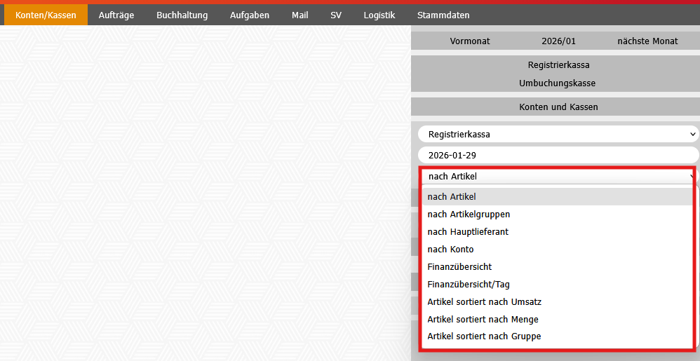 Im ersten Feld wird festgelegt, welche Kassen ausgewertet werden sollen: