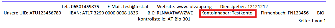 Name des Kontoinhaber (wird auf den Belegen angezeigt) |