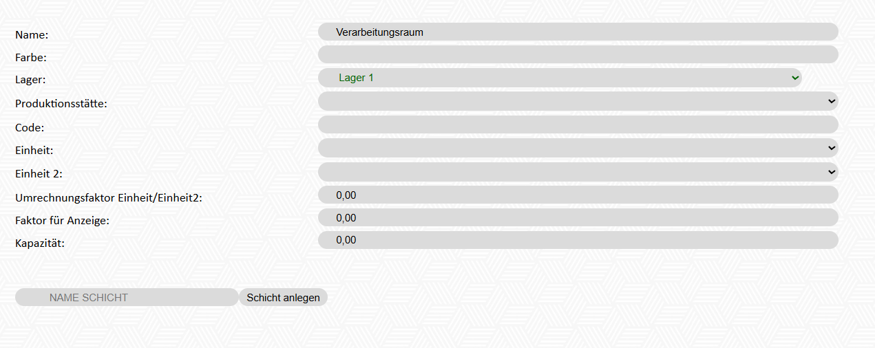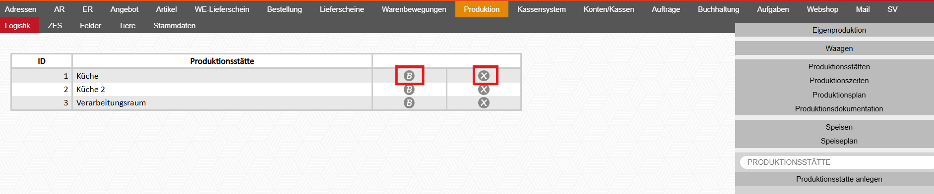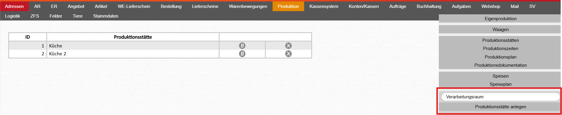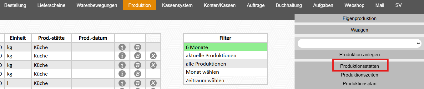 Damit Produktionen angelegt werden können, muss zumindest eine Produktionsstätte angelegt werden.