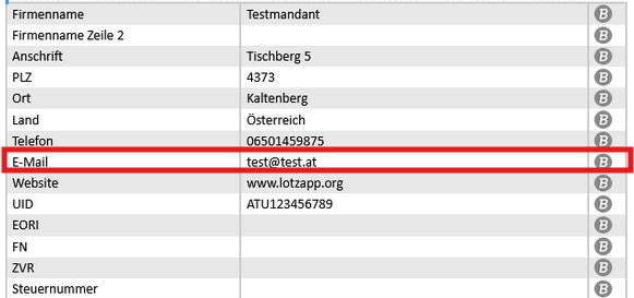 Die E-Mail-Adresse muss im Modul Stammdaten hinterlegt werden: |