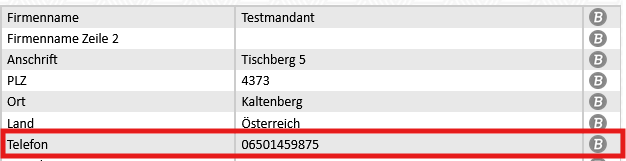 Die Telefonnummer muss im Modul Stammdaten hinterlegt werden: