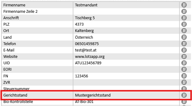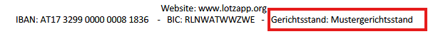 Der Gerichtsstand muss im Modul Stammdaten hinterlegt sein: |