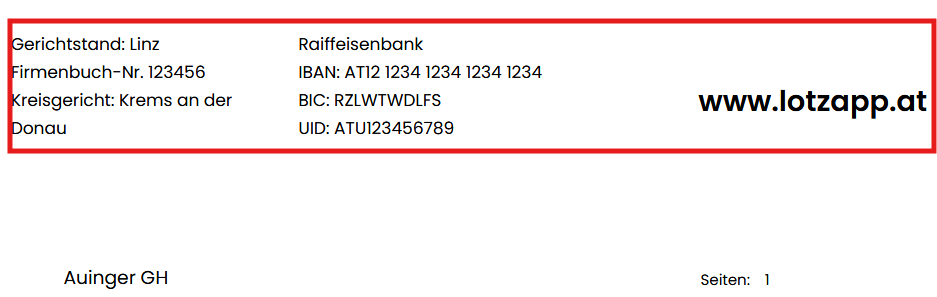 auto = Die Standard-Fußzeilen-Formatierung von LotzApp wird angezeigt