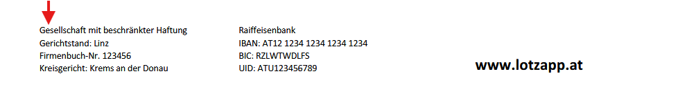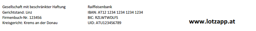 Beispeil: Dein LotzApp-Betreuer übernimmt gerne die Einrichtung deiner Fußzeile nach deinen Wünschen. Schicke ihm dazu einfach die gewünschten Inhalte und eine kurze Beschreibung, wie die Fußzeile aussehen soll. |