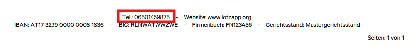 header = Die Telefonnummer wird rechts oben am Beleg angezeigt