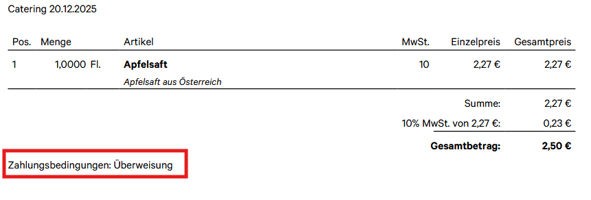 true = Die jeweilige Zahlungsmethode wird am Beleg angezeigt