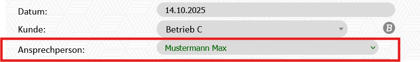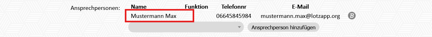 2. Modul Adressen - Adresse bearbeiten (B) - die Ansprechperson muss im Feld "Ansprechpersonen" hinterlegt sein