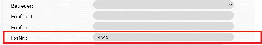Um diese Nummer anzeigen zu können muss im Modul Stammdaten - Konfiguration - "buchhaltung_ar_extnr" auf True gestellt sein. Dadurch wird im Modul AR - Bearbeiten (B) - das Feld "ExtNr" freigeschalten.