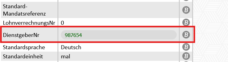 Die Dienstgebernummer muss im Modul Stammdaten hinterlegt werden: |