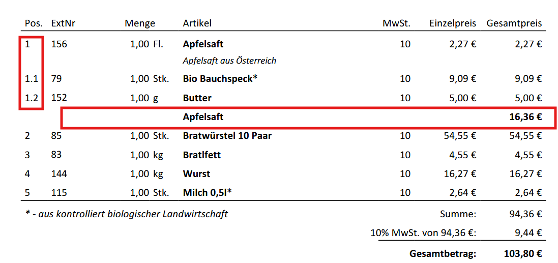posid = Die Position und die Artikel ID wrden am Beleg angedruckt |
