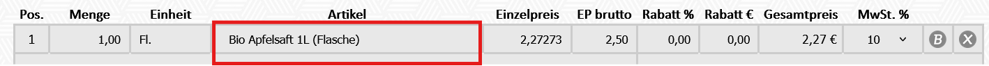 true = Am Beleg wird der Kurzname des Artikels angezeigt und nicht der gesamte Artikelname