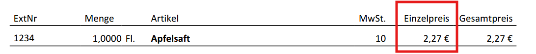 Diese Zahl gibt die Anzahl der Dezemalstellen der Einzelpreise am Beleg an.