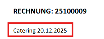 false = Der Text, der in dem Feld "Betreff" eingetragen wurde, wird nicht fettgedruckt am Beleg angezeigt: