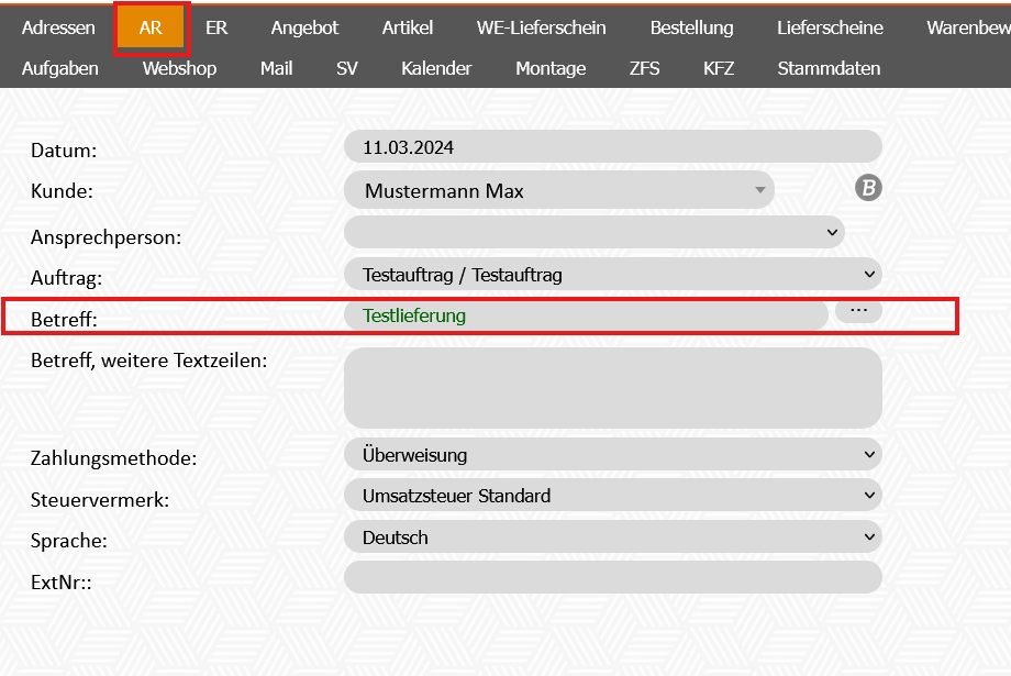 | belege_ar_kopftext | auto/config | config = Text der unter "Konfiguration Texte" eingegeben wurde |