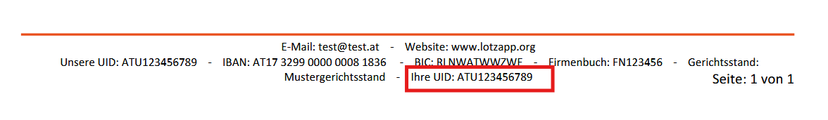 bottom: Die UID-Nummer des Lieferanten wird am Beleg in der Fußzeile angedruckt |