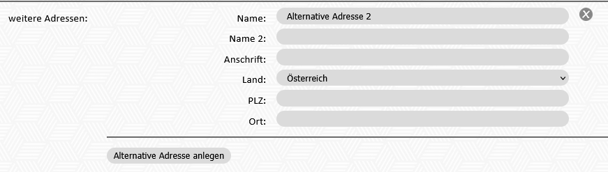 Alternative Adressen müssen im Modul Adressen - Adresse bearbeiten (B) unter "weitere Adressen" angelegt werden. |