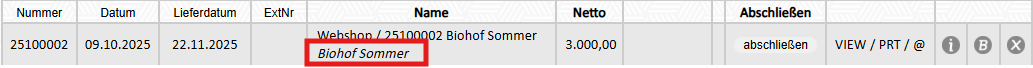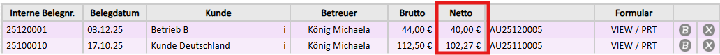 Nettobetrag wird in der Auftragsübersicht angezeigt |