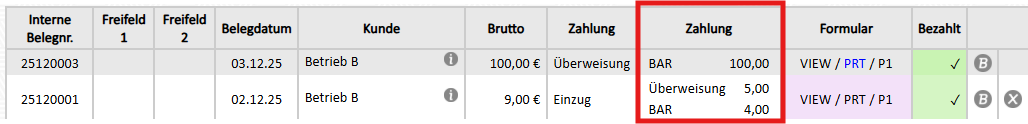 2. Bezahlart wird in der AR-Übersicht angezeigt |